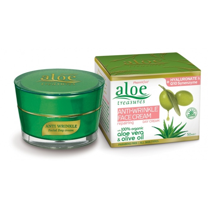 Крем содержит органические компоненты алоэ вера и органическое оливковое масло, витамины А и Е, гиалуроновую кислоту, экстракт зеленого чая и коэнзим Q10.